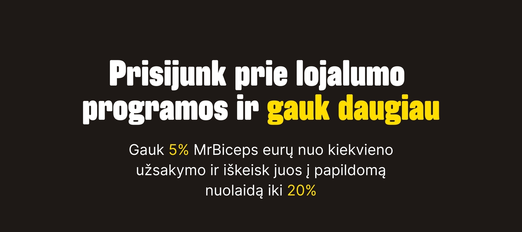Gauk 5% nuo prekių sumos MrBiceps eurais. 1 MrBiceps euras = 1 € |