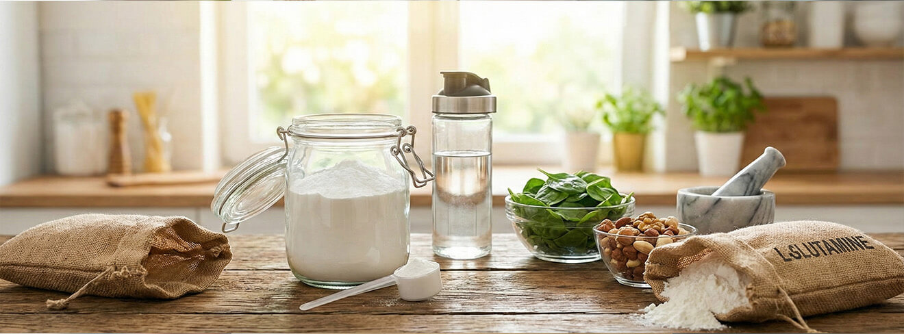Nepaisant to, maisto šaltiniai dažnai nesuteikia pakankamai glutamino, kai poreikis išauga – todėl papildų forma tampa efektyvus sprendimas.