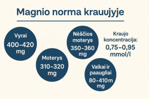Sveiko žmogaus magnio koncentracija kraujyje turėtų būti 0,75–0,95 mmol/l.